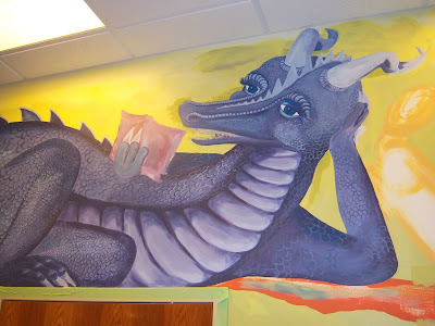 Speaking of flexible. The people at the library are so accommodating. The space is the best ever because there is a work room right near where I'm painting. It has large tables for all my stuff and a sink for clean up. But the people that work at the library are even better than the space. They are so helpful and encouraging. I hope they speak up if I'm doing something they do not like- whether it has to do with supplies or the mural.