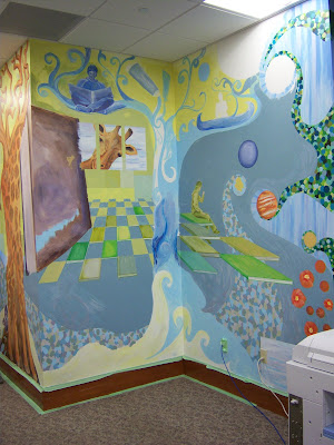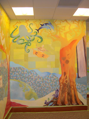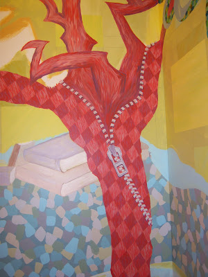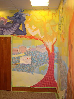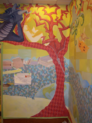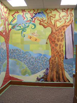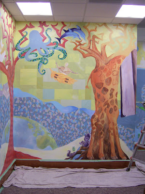 Looking at the photos of what I did today, I realize the branches need to be thicker. And, more of them need to "go off the page" into ceiling line. But that is an easy fix.