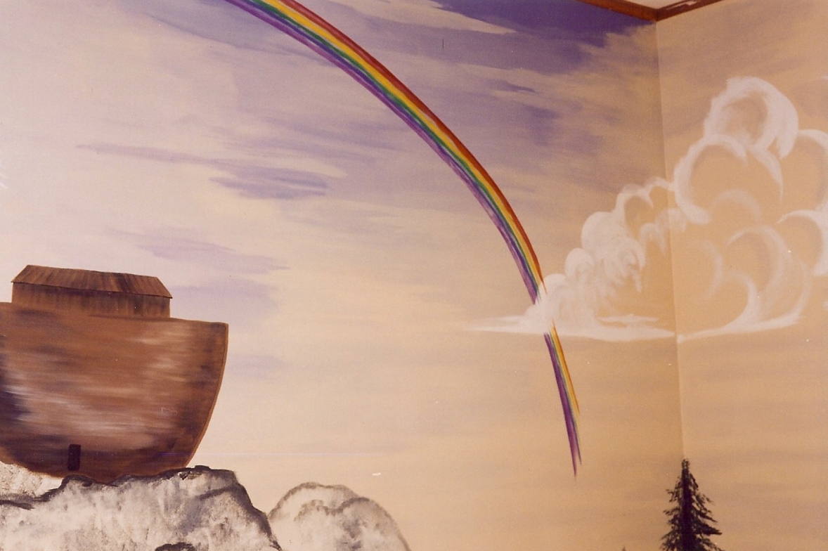 Did this Church nursery mural in th early 90's. Scenes for Noah's Ark filled two rooms. I believe this was one of my first murals.