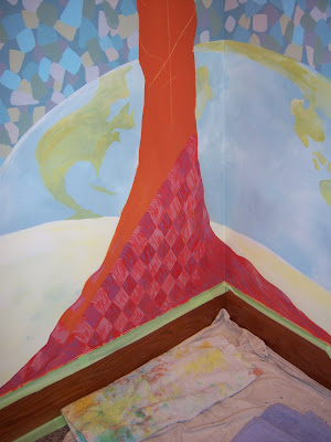 I'm so thankful that everyone at the library is so patient and positive. I've changed my idea quite a bit and they still seem pleased. The design is still the same idea- that reading can let you imagine a whole new world. I don't have any really deep symbolism- just a lot of whimsy and fun. I'm hoping when it is all done that the shapes and colors keep the eye moving throughout the whole scene...keep you looking for more things hidden in odd places.