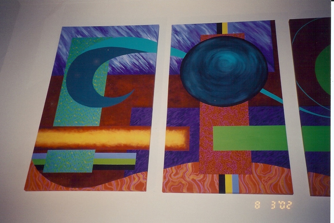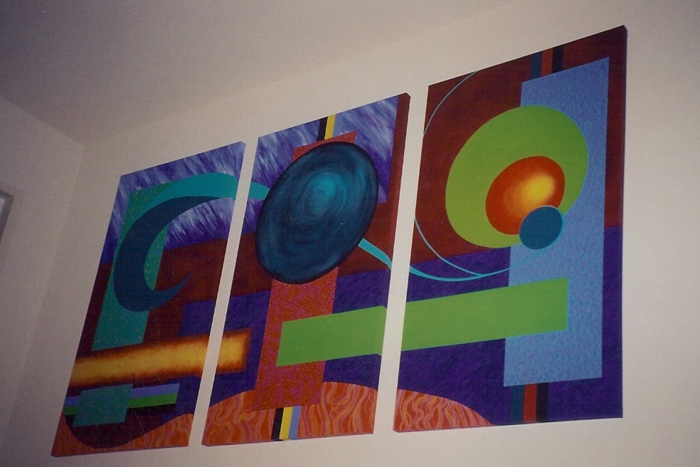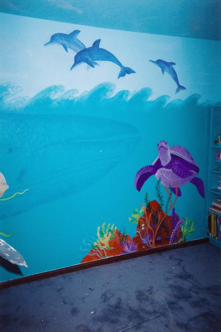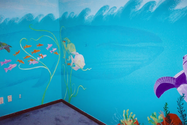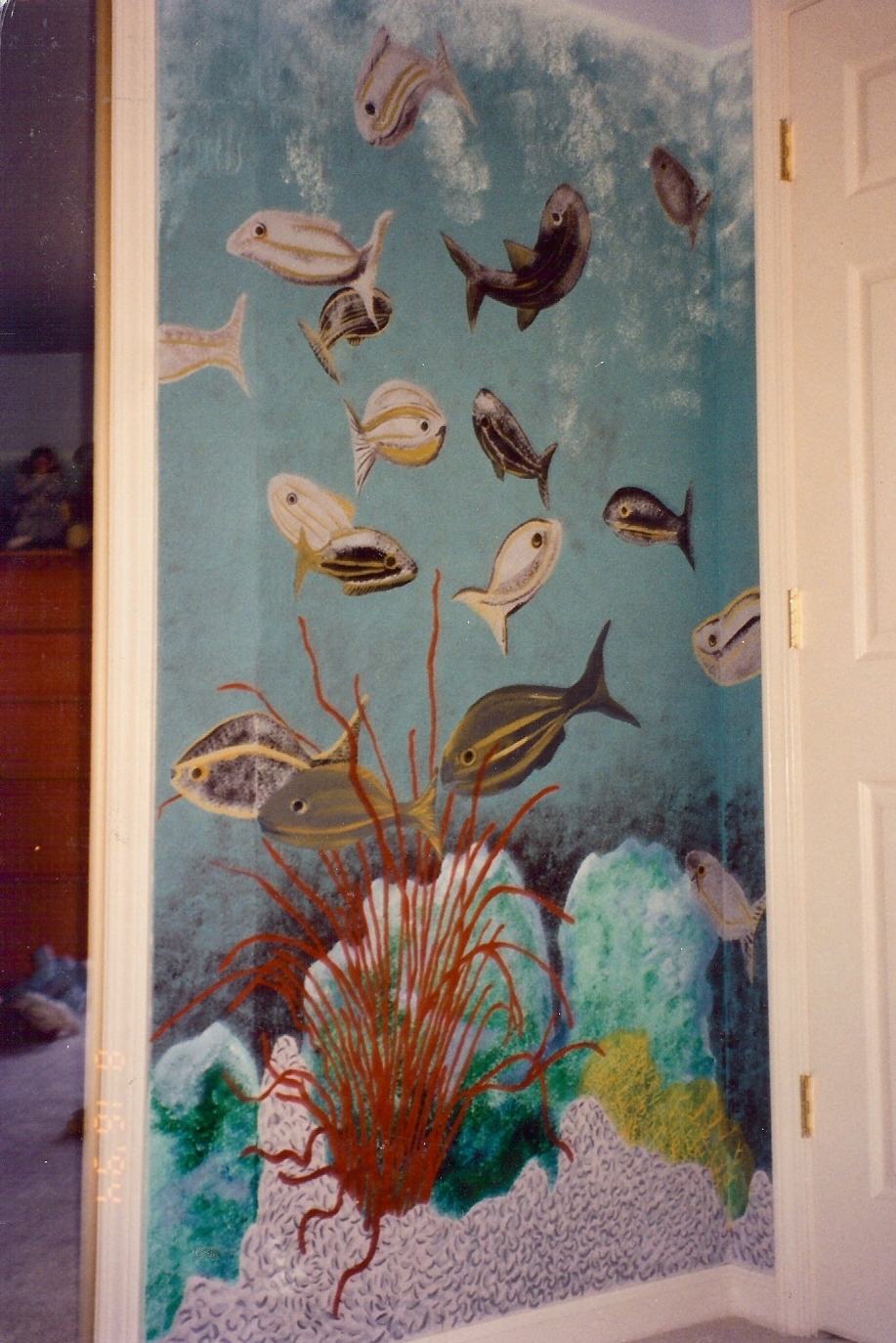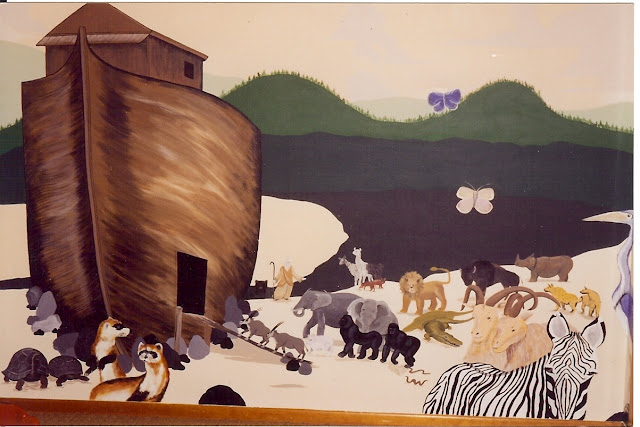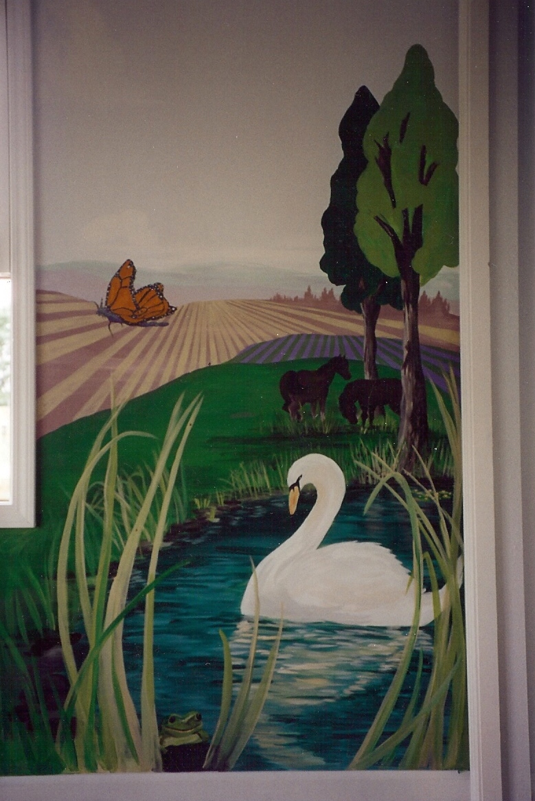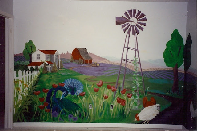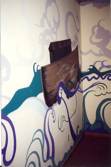 Becky Loudermilk and I have painted scenes in about 5 different churches. Here is one long wall in a kids rec room at the First Baptist Church. (10' x 16')