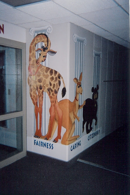 I don't enjoy copying others designs, but the school got permission for the Character Counts Animals to be recreated and they do look pretty cute by the Kindergarten doorway.